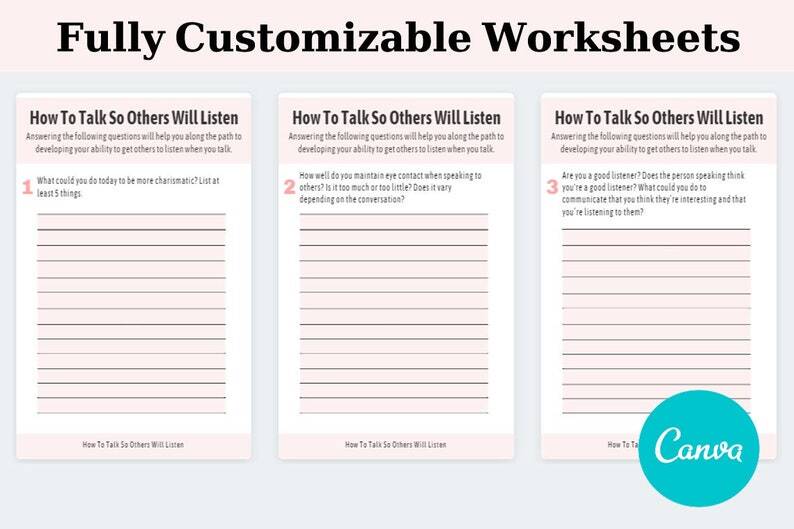 Life Coach Templates Worksheets | How To Talk So Others Will Listen | Canva Templates | Self Growth Confidence