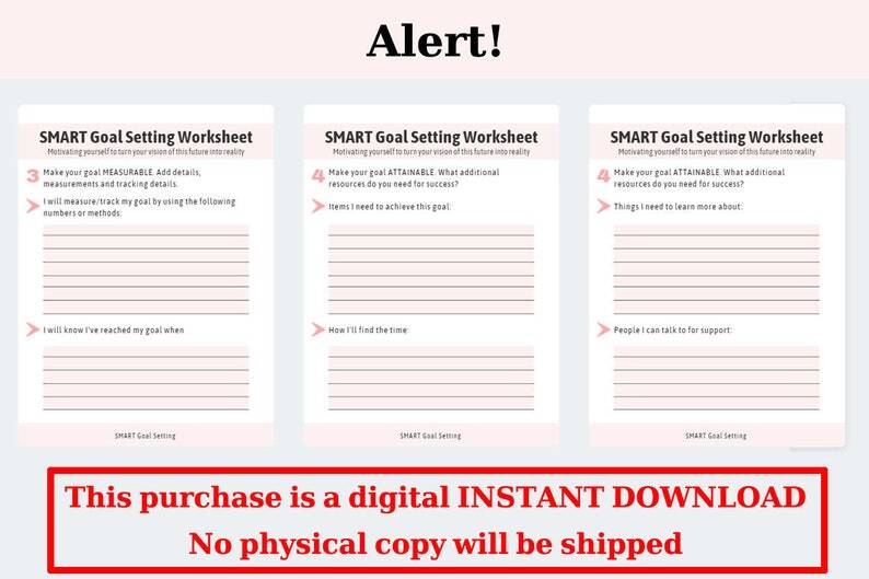 The Smart Goal Setting Worksheet is a unique, professional resource that will help people develop the skills they need to improve their life. This resource features three worksheets to help you improve your life and achieve your goals. You can use this self-help tool with your clients or sell it as a stand-alone product.
