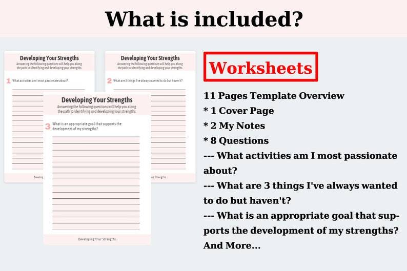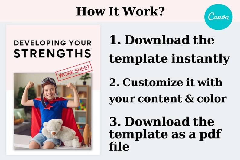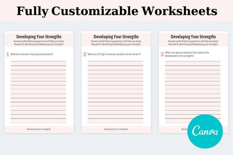 Life Coach Templates Worksheets | Developing Your Strengths | Canva Templates | Self Growth Confidence