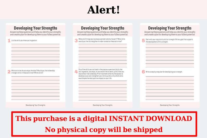 The Developing Your Strengths + Checklists Worksheet is a unique, professional resource that will help people develop the skills they need to improve their life. This resource features three worksheets to help you improve your life and achieve your goals. You can use this self-help tool with your clients or sell it as a stand-alone product.