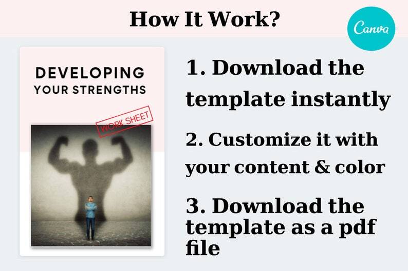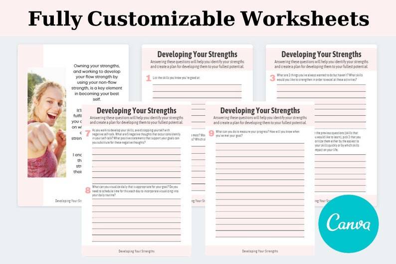 Life Coach Templates Worksheets | Developing Your Strengths + Checklists | Canva Templates | Self Growth Confidence
