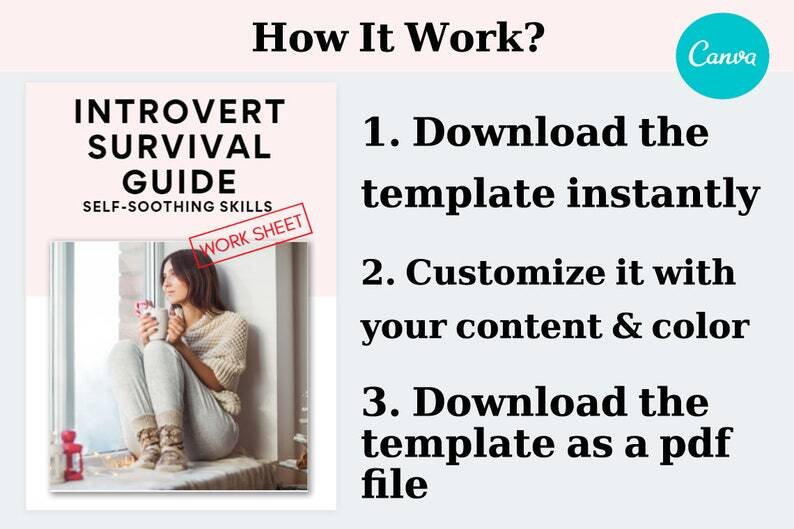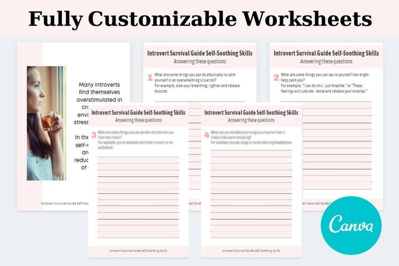 Life Coach Templates Worksheets | Introvert Survival Guide Self-Soothing Skills | Canva Templates | Self Growth Confidence