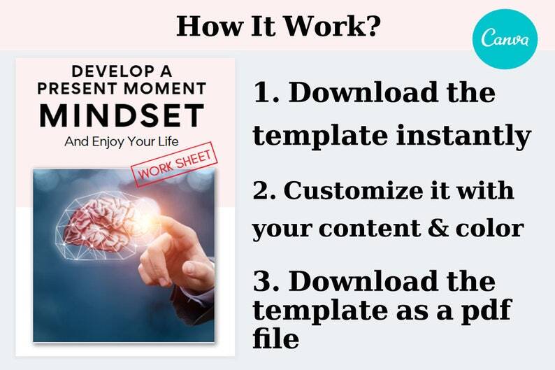 Life Coach Templates Worksheets | Develop A Present Moment Mindset | Canva Templates | Self Growth Confidence