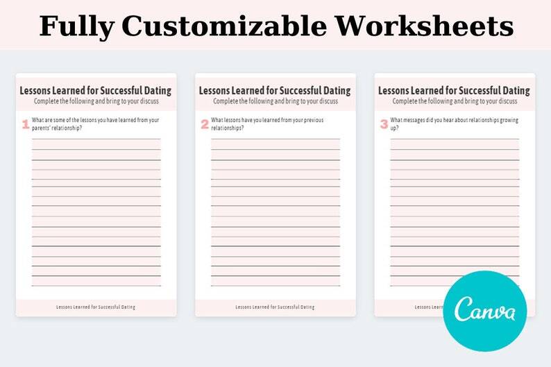 Life Coach Templates Worksheets | Lessons Learned for Successful Dating | Canva Templates | Self Growth Confidence